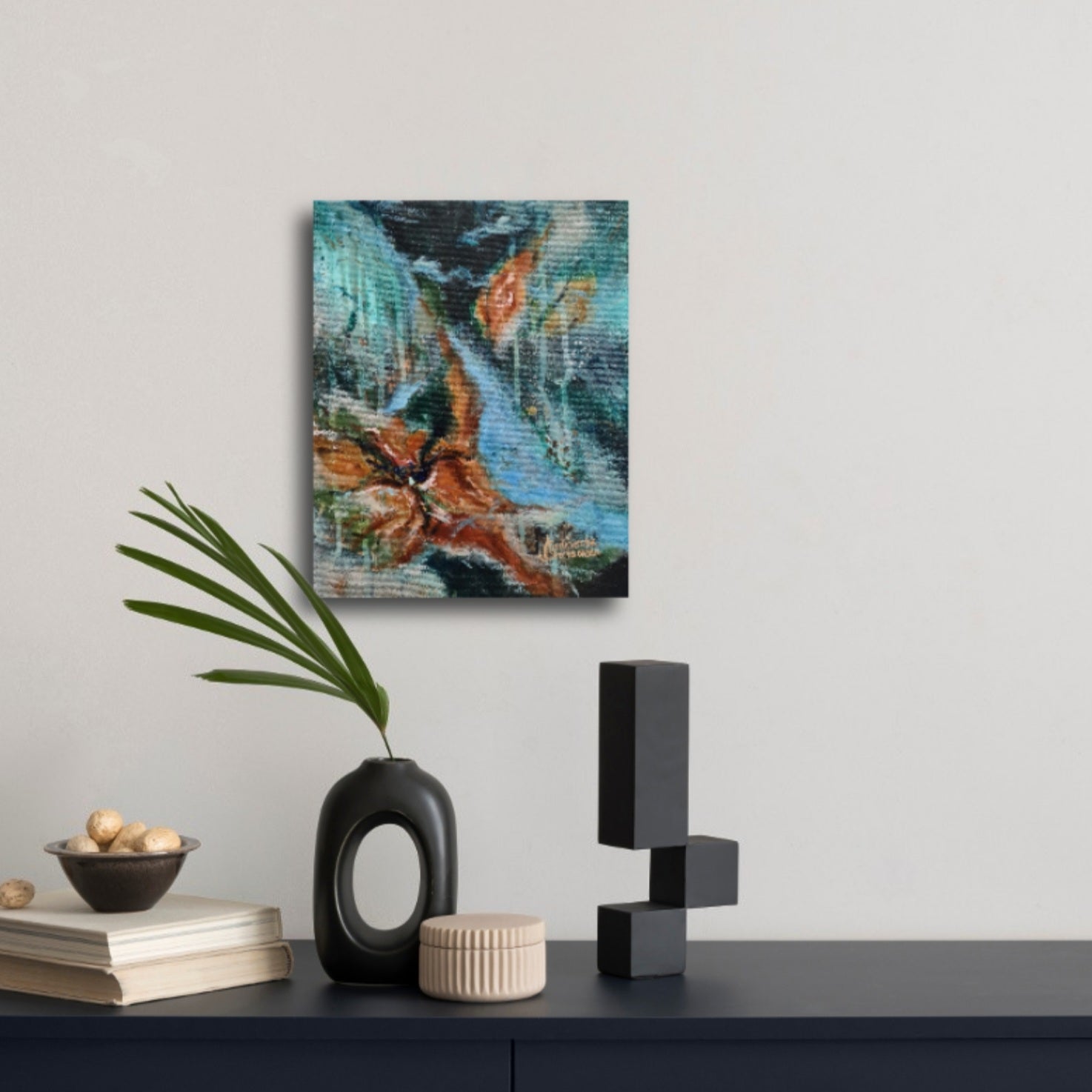 Let its vibrant hues and dynamic forms spark your imagination and awaken your inner passion. Embrace the energy of the elements and bring this small, but powerful painting "Alliance of the Elements #3" home.